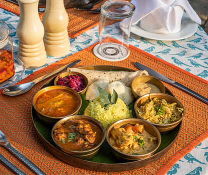 The multi-cuisine dining hall offers a delightful selection of regional, Indian, and international dishes curated with fresh ingredients sourced from the lodge’s organic garden and trusted local suppliers. Breakfast is often served during safaris, lunches feature traditional regional thalis, and dinners offer relaxed à la carte options. Guests can also unwind with fine beverages at the bar, freshly brewed coffees, specialty teas, homemade ice creams, and artisanal breads baked in-house.